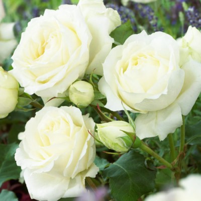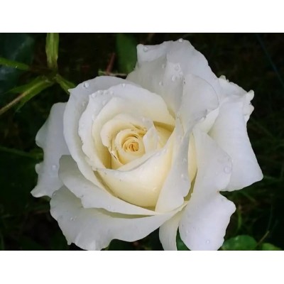 Цветок имеет крупную форму и высокий центр. Он достигает диаметра от 8 до 10 см и состоит из 60 лепестков белой окраски. Цветки располагаются на стеблях одиночно или в небольших соцветиях-кистях, которые содержат от трех до пяти цветков. Аромат цветков очень тонкий и фруктовый.